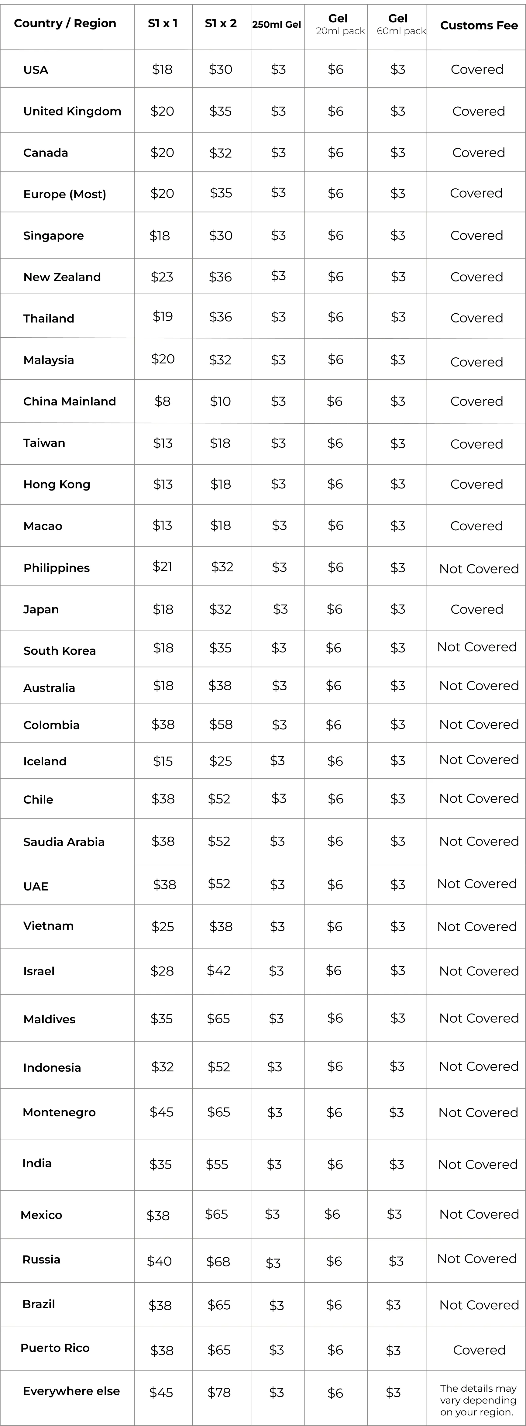 • For excluded regions, customers are responsible for handling any import taxes upon delivery. We will provide assistance where possible.